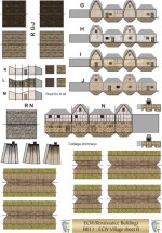 Each sheet contains all the parts needed to make up a number of different buildings, including additional details such as chimneys, lean-to sheds and outhouses. On each sheet are a variety of roof textures so that you can mix and match some roof/wall combinations to give even more variety. |