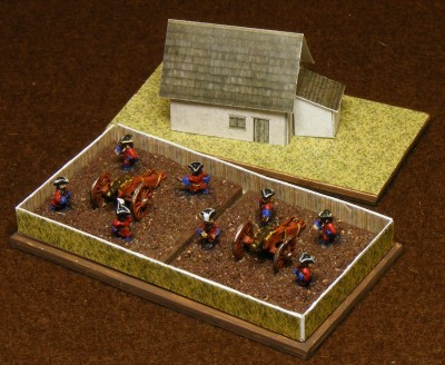The cottage (on its 60x30mm base) can be replaced with troops inside the enclosure to indicate that they are inside the building. |