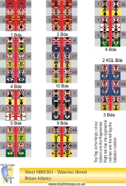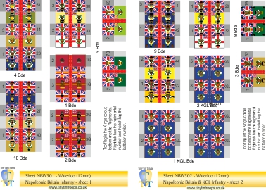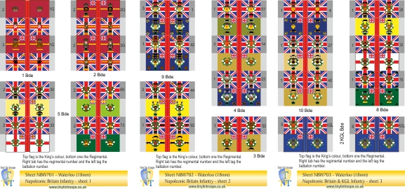 Flags for British regiments at Waterloo Flag sheets are available in sizes 6, 8, 10, 12, 15 & 18mm.