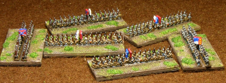 above : CSA Cavalry | below : CSA cavalry close-up | above : CSA dismounted cavalry | below : CSA Zouaves | ||